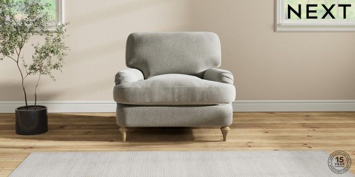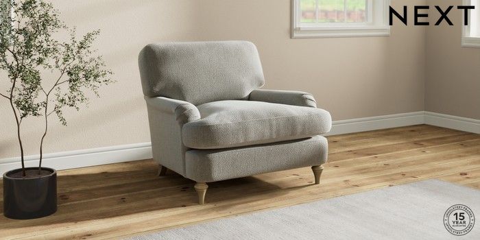 7.2.10 Sadie Deep Relaxed Sit Armchair Chunky Texture Dove High Slim Turned - Light | Made Click here to use our website with more accessibility support, for example screen readers