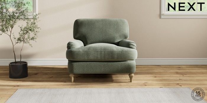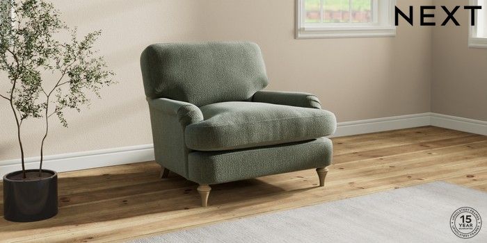 7.2.10 Sadie Deep Relaxed Sit Armchair Chunky Texture Mid Forest Green High Slim Turned - Light | Made Click here to use our website with more accessibility support, for example screen readers