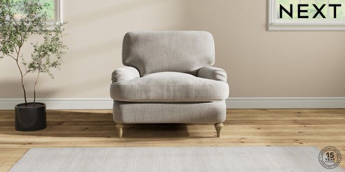 7.2.10 Sadie Deep Relaxed Sit Armchair Chunky Weave Dove Grey High Slim Turned - Light | Made Click here to use our website with more accessibility support, for example screen readers