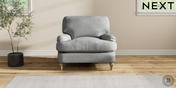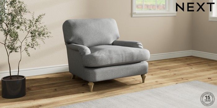 7.2.10 Sadie Deep Relaxed Sit Armchair Chunky Weave Mid Grey High Slim Turned - Light | Made Click here to use our website with more accessibility support, for example screen readers