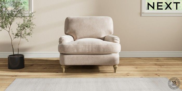 7.2.10 Sadie Deep Relaxed Sit Armchair Cotswold Chenille Light Natural High Slim Turned - Light | Made Click here to use our website with more accessibility support, for example screen readers