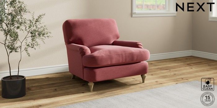 7.2.10 Sadie Deep Relaxed Sit Armchair Fine Chenille Easy Clean Mid Pink High Slim Turned - Light | Made Click here to use our website with more accessibility support, for example screen readers