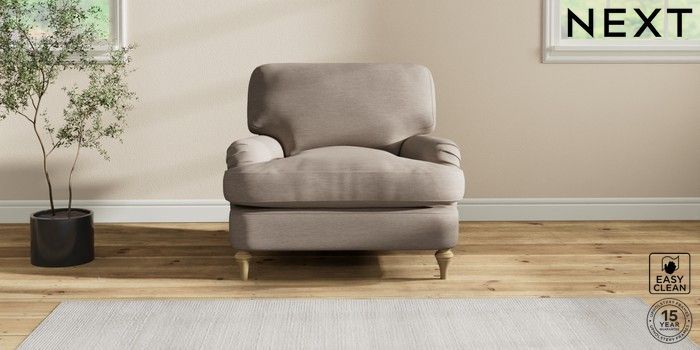 7.2.10 Sadie Deep Relaxed Sit Armchair Fine Chenille Easy Clean Mid Taupe Brown High Slim Turned - Light | Made Click here to use our website with more accessibility support, for example screen readers