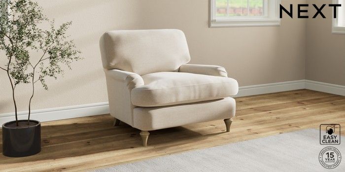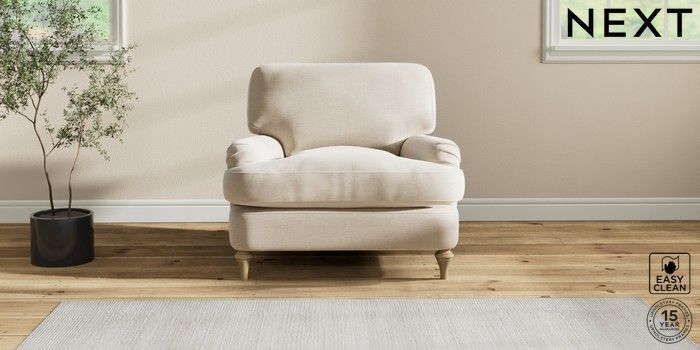 7.2.10 Sadie Deep Relaxed Sit Armchair Fine Chenille Easy Clean Oyster High Slim Turned - Light | Made Click here to use our website with more accessibility support, for example screen readers