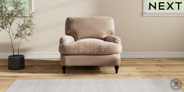 7.2.10 Sadie Deep Relaxed Sit Armchair Luxe Chenille Mid Natural High Slim Turned - Dark | Made Click here to use our website with more accessibility support, for example screen readers