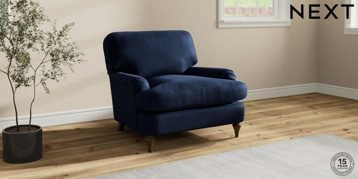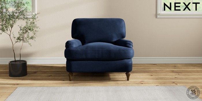 7.2.10 Sadie Deep Relaxed Sit Armchair Luxe Chenille Navy Blue High Slim Turned - Mid | Made Click here to use our website with more accessibility support, for example screen readers