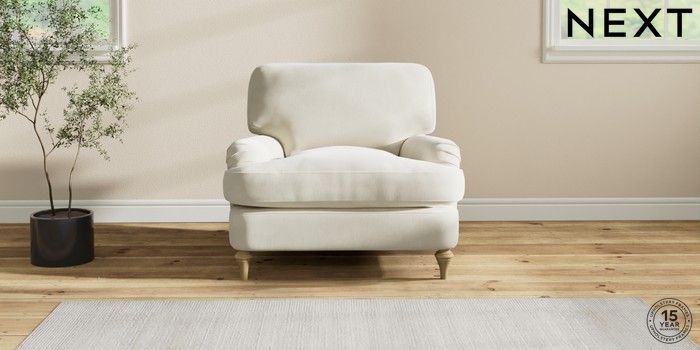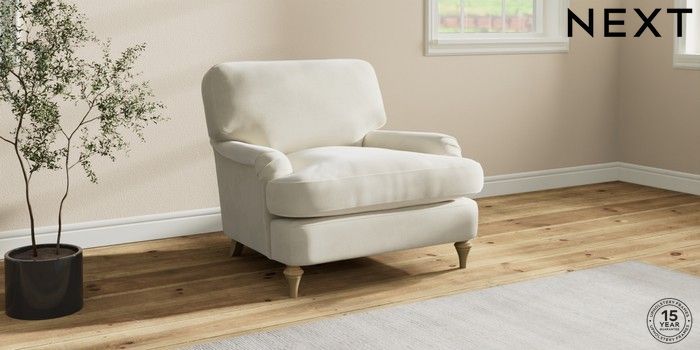 7.2.10 Sadie Deep Relaxed Sit Armchair Luxe Chenille Oyster High Slim Turned - Light | Made Click here to use our website with more accessibility support, for example screen readers