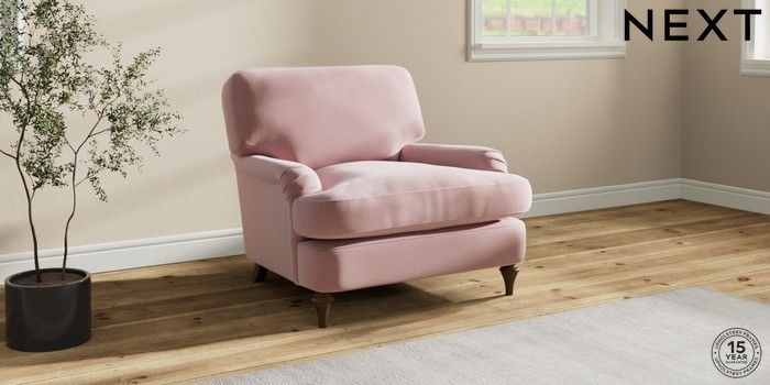 7.2.10 Sadie Deep Relaxed Sit Armchair Natural Mix Light Rose Pink High Slim Turned - Mid | Made Click here to use our website with more accessibility support, for example screen readers