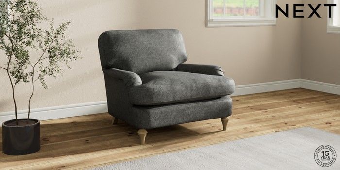 7.2.10 Sadie Deep Relaxed Sit Armchair Plush Chenille Dark Grey High Slim Turned - Light | Made Click here to use our website with more accessibility support, for example screen readers