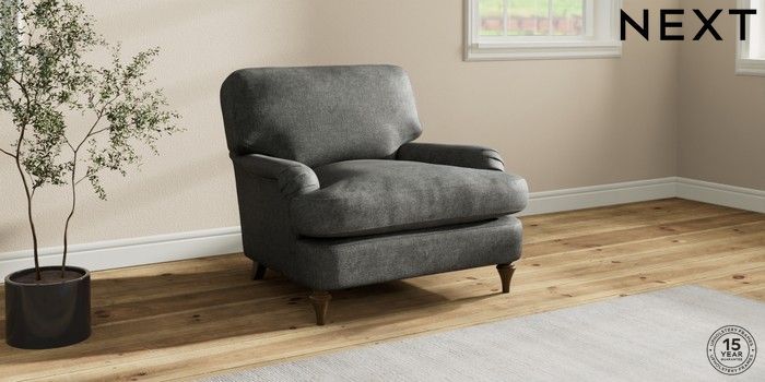 7.2.10 Sadie Deep Relaxed Sit Armchair Plush Chenille Dark Grey High Slim Turned - Mid | Made Click here to use our website with more accessibility support, for example screen readers