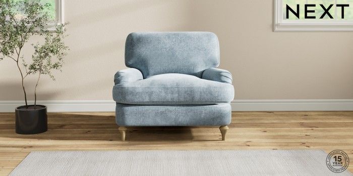7.2.10 Sadie Deep Relaxed Sit Armchair Plush Chenille Light Blue High Slim Turned - Light | Made Click here to use our website with more accessibility support, for example screen readers