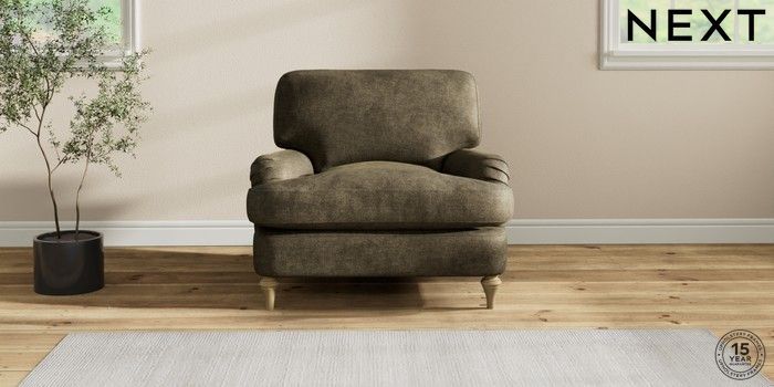 7.2.10 Sadie Deep Relaxed Sit Armchair Plush Chenille Moss Green High Slim Turned - Light | Made Click here to use our website with more accessibility support, for example screen readers