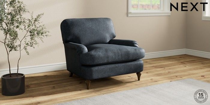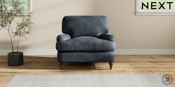 7.2.10 Sadie Deep Relaxed Sit Armchair Plush Chenille Slate Blue High Slim Turned - Mid | Made Click here to use our website with more accessibility support, for example screen readers