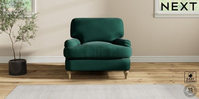 7.2.10 Sadie Deep Relaxed Sit Armchair Plush Velvet Easy Clean Bottle Green High Slim Turned - Light | Made Click here to use our website with more accessibility support, for example screen readers