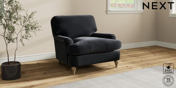 7.2.10 Sadie Deep Relaxed Sit Armchair Plush Velvet Easy Clean Charcoal Grey High Slim Turned - Light | Made Click here to use our website with more accessibility support, for example screen readers