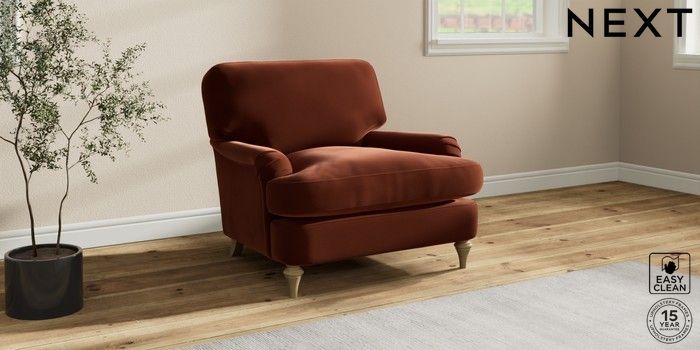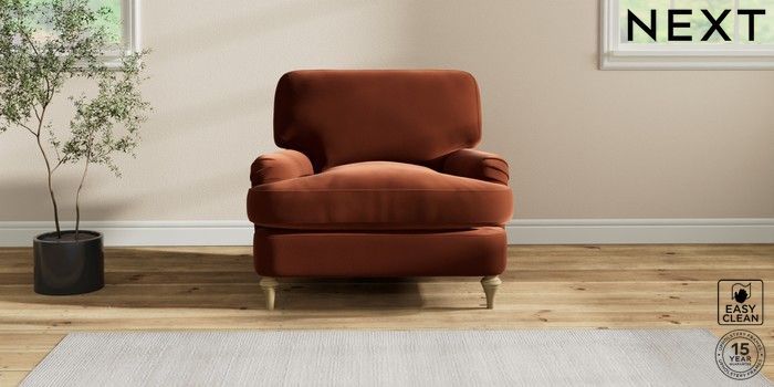 7.2.10 Sadie Deep Relaxed Sit Armchair Plush Velvet Easy Clean Ginger Orange High Slim Turned - Light | Made Click here to use our website with more accessibility support, for example screen readers