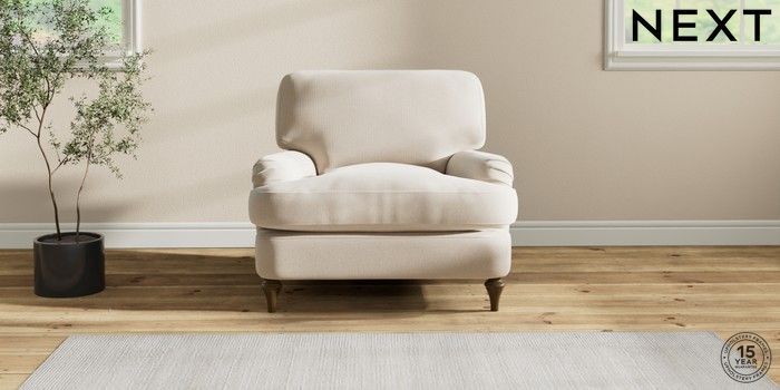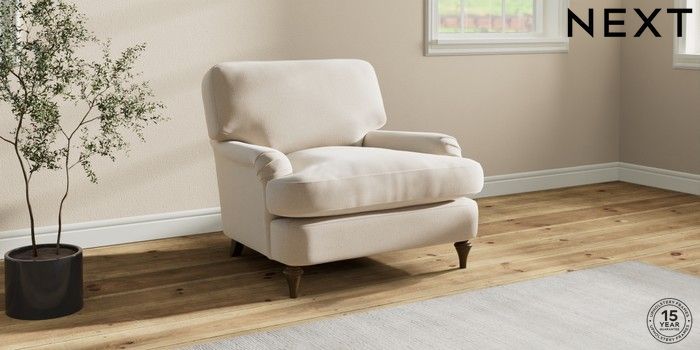 7.2.10 Sadie Deep Relaxed Sit Armchair Studio Chenille Oyster High Slim Turned - Mid | Made Click here to use our website with more accessibility support, for example screen readers