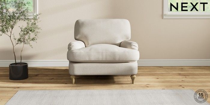 7.2.10 Sadie Deep Relaxed Sit Armchair Tweedy Chenille Oyster High Slim Turned - Light | Made Click here to use our website with more accessibility support, for example screen readers