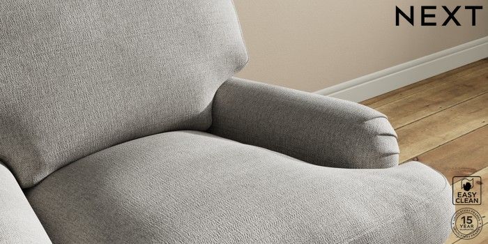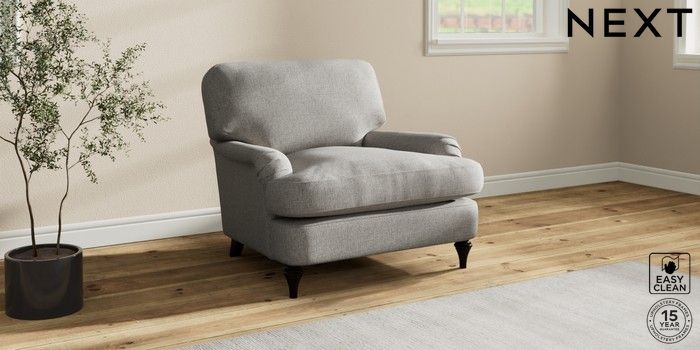 7.2.10 Sadie Deep Relaxed Sit Armchair Woven Chenille Easy Clean Light Grey High Slim Turned - Dark | Made Click here to use our website with more accessibility support, for example screen readers