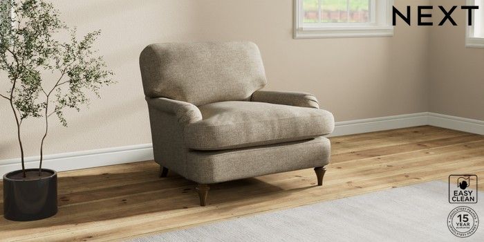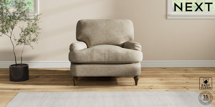 7.2.10 Sadie Deep Relaxed Sit Armchair Woven Chenille Easy Clean Mid Natural High Slim Turned - Mid | Made Click here to use our website with more accessibility support, for example screen readers