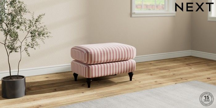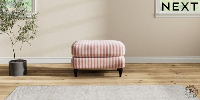 7.2.10 Sadie Deep Relaxed Sit Footstool Bold Chenille Stripe Dark Pink High Slim Turned - Dark | Made Click here to use our website with more accessibility support, for example screen readers