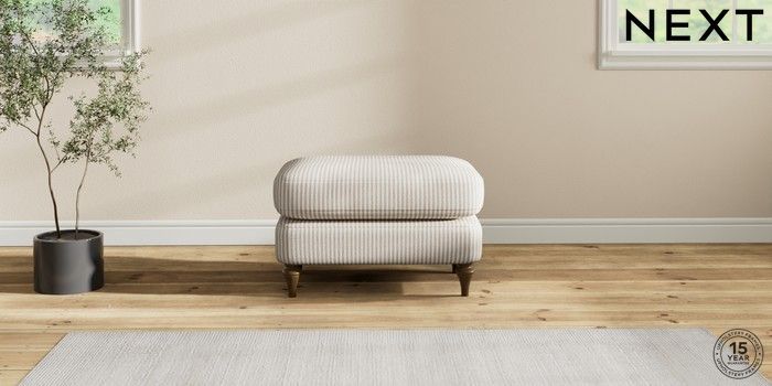 7.2.10 Sadie Deep Relaxed Sit Footstool Chenille Stripe Natural High Slim Turned - Mid | Made Click here to use our website with more accessibility support, for example screen readers