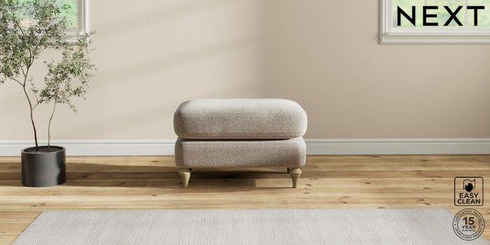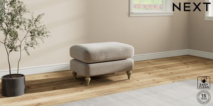 7.2.10 Sadie Deep Relaxed Sit Footstool Chunky Boucle Easy Clean Dove High Slim Turned - Light | Made Click here to use our website with more accessibility support, for example screen readers