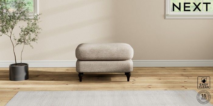 7.2.10 Sadie Deep Relaxed Sit Footstool Chunky Boucle Easy Clean Mid Natural High Slim Turned - Dark | Made Click here to use our website with more accessibility support, for example screen readers