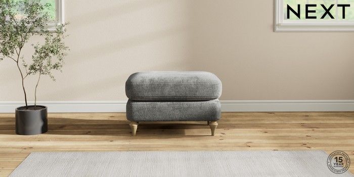 7.2.10 Sadie Deep Relaxed Sit Footstool Chunky Chenille Dark Grey High Slim Turned - Light | Made Click here to use our website with more accessibility support, for example screen readers