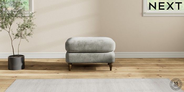 7.2.10 Sadie Deep Relaxed Sit Footstool Chunky Chenille Light Grey High Slim Turned - Mid | Made Click here to use our website with more accessibility support, for example screen readers