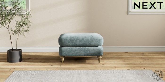 7.2.10 Sadie Deep Relaxed Sit Footstool Chunky Chenille Light Teal Green High Slim Turned - Light | Made Click here to use our website with more accessibility support, for example screen readers