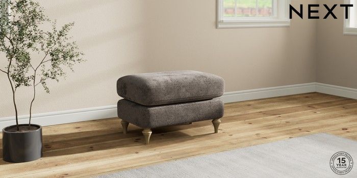 7.2.10 Sadie Deep Relaxed Sit Footstool Chunky Chenille Mink Brown High Slim Turned - Light | Made Click here to use our website with more accessibility support, for example screen readers