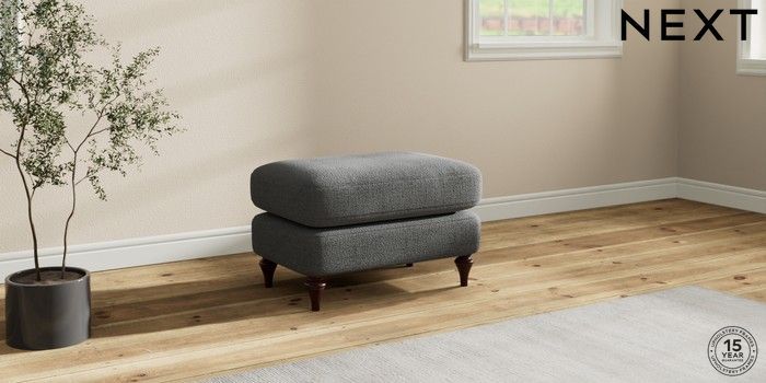 7.2.10 Sadie Deep Relaxed Sit Footstool Chunky Texture Dark Grey High Slim Turned - Dark Brown | Made Click here to use our website with more accessibility support, for example screen readers