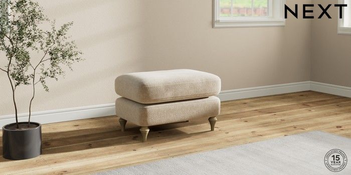 7.2.10 Sadie Deep Relaxed Sit Footstool Chunky Weave Cream High Slim Turned - Light | Made Click here to use our website with more accessibility support, for example screen readers
