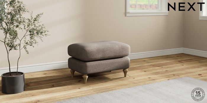 7.2.10 Sadie Deep Relaxed Sit Footstool Chunky Weave Dark Natural High Slim Turned - Light | Made Click here to use our website with more accessibility support, for example screen readers