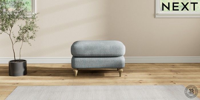 7.2.10 Sadie Deep Relaxed Sit Footstool Chunky Weave Mid Blue High Slim Turned - Light | Made Click here to use our website with more accessibility support, for example screen readers