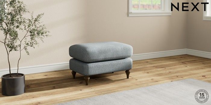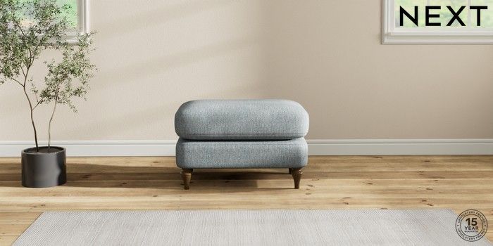 7.2.10 Sadie Deep Relaxed Sit Footstool Chunky Weave Mid Blue High Slim Turned - Mid | Made Click here to use our website with more accessibility support, for example screen readers