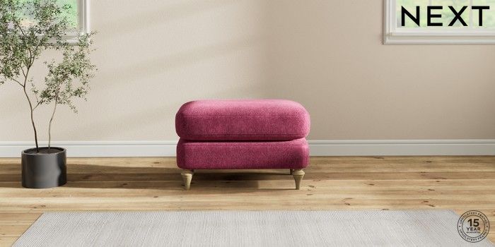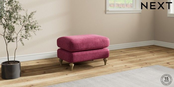 7.2.10 Sadie Deep Relaxed Sit Footstool Cotswold Chenille Dark Raspberry Pink High Slim Turned - Light | Made Click here to use our website with more accessibility support, for example screen readers