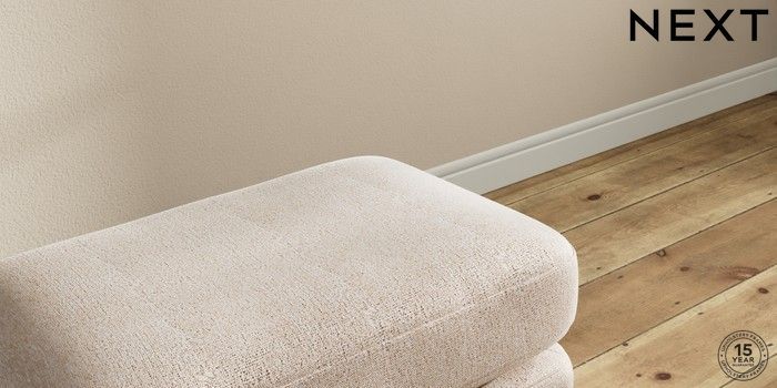 7.2.10 Sadie Deep Relaxed Sit Footstool Cotswold Chenille Light Natural High Slim Turned - Dark Brown | Made Click here to use our website with more accessibility support, for example screen readers