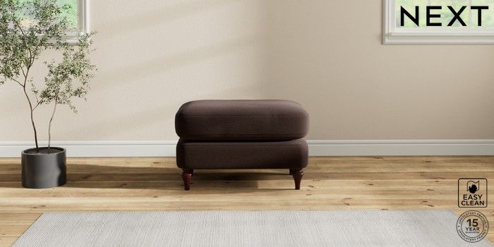 7.2.10 Sadie Deep Relaxed Sit Footstool Fine Chenille Easy Clean Chocolate Brown High Slim Turned - Dark Brown | Made Click here to use our website with more accessibility support, for example screen readers