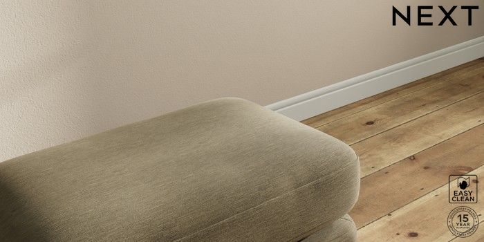 7.2.10 Sadie Deep Relaxed Sit Footstool Fine Chenille Easy Clean Dark Moss Green High Slim Turned - Mid | Made Click here to use our website with more accessibility support, for example screen readers