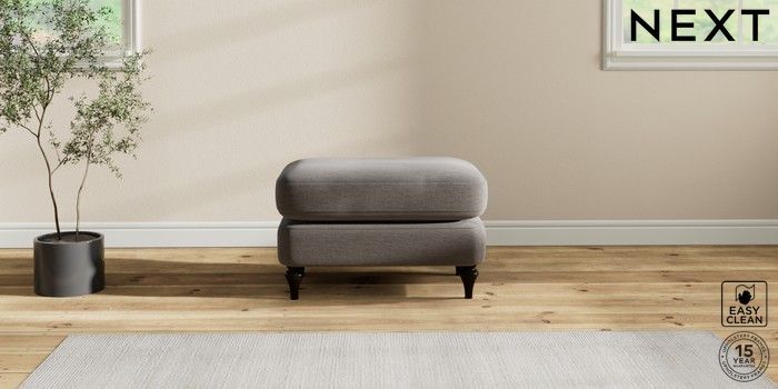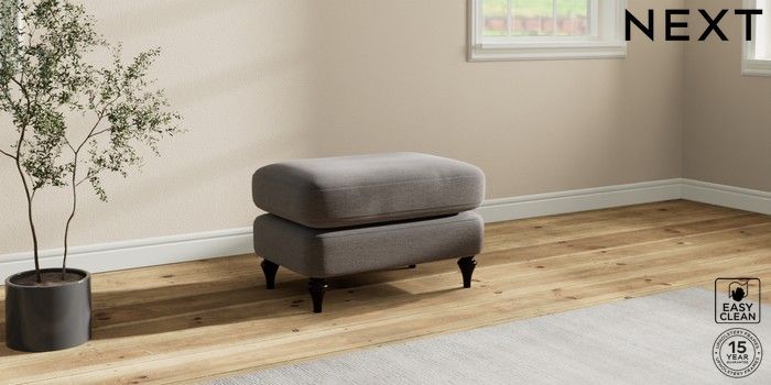7.2.10 Sadie Deep Relaxed Sit Footstool Fine Chenille Easy Clean Dark Smoke Grey High Slim Turned - Dark | Made Click here to use our website with more accessibility support, for example screen readers