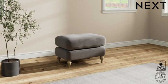 7.2.10 Sadie Deep Relaxed Sit Footstool Fine Chenille Easy Clean Dark Smoke Grey High Slim Turned - Light | Made Click here to use our website with more accessibility support, for example screen readers