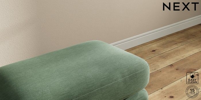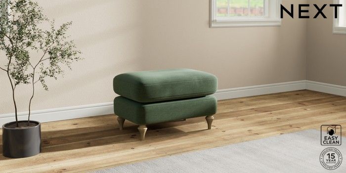 7.2.10 Sadie Deep Relaxed Sit Footstool Fine Chenille Easy Clean Mid Khaki Green High Slim Turned - Light | Made Click here to use our website with more accessibility support, for example screen readers
