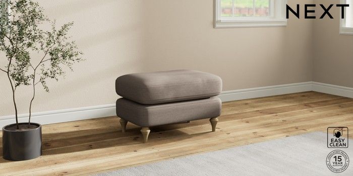7.2.10 Sadie Deep Relaxed Sit Footstool Fine Chenille Easy Clean Mid Taupe Brown High Slim Turned - Light | Made Click here to use our website with more accessibility support, for example screen readers
