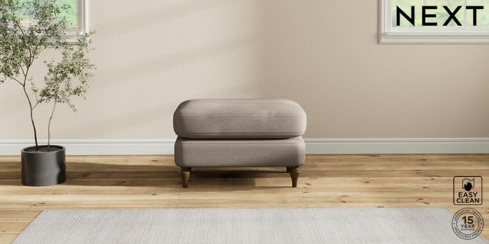 7.2.10 Sadie Deep Relaxed Sit Footstool Fine Chenille Easy Clean Mid Taupe Brown High Slim Turned - Mid | Made Click here to use our website with more accessibility support, for example screen readers