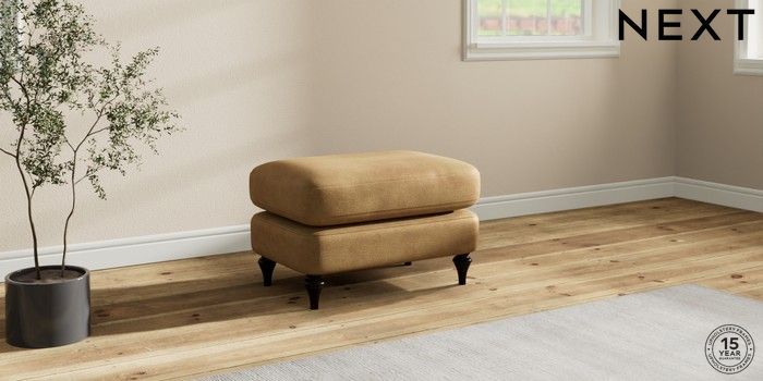 7.2.10 Sadie Deep Relaxed Sit Footstool Luxe Chenille Honey Yellow High Slim Turned - Dark | Made Click here to use our website with more accessibility support, for example screen readers