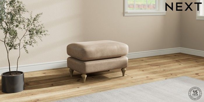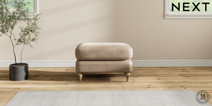 7.2.10 Sadie Deep Relaxed Sit Footstool Luxe Chenille Mid Camel Beige High Slim Turned - Light | Made Click here to use our website with more accessibility support, for example screen readers