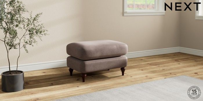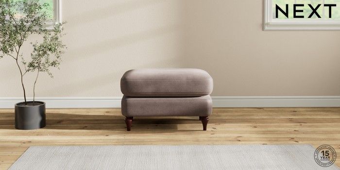 7.2.10 Sadie Deep Relaxed Sit Footstool Luxe Chenille Mink Brown High Slim Turned - Dark Brown | Made Click here to use our website with more accessibility support, for example screen readers