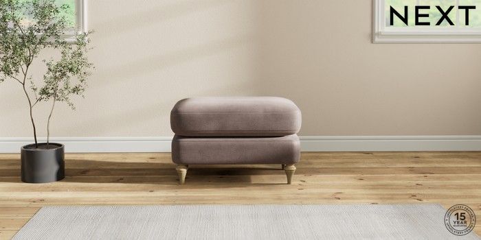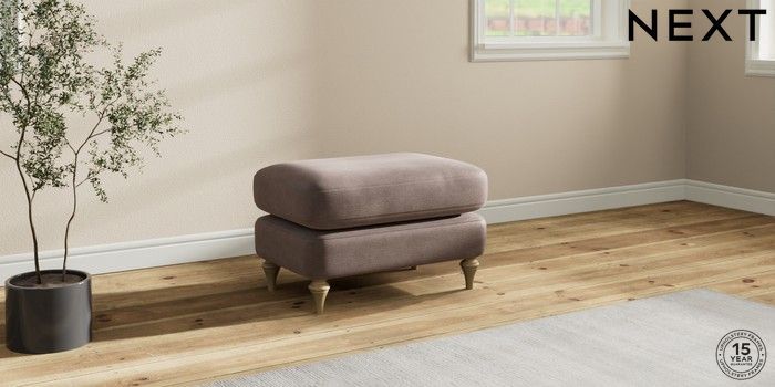 7.2.10 Sadie Deep Relaxed Sit Footstool Luxe Chenille Mink Brown High Slim Turned - Light | Made Click here to use our website with more accessibility support, for example screen readers